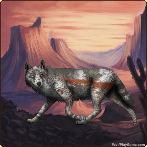 Eyes: Light Blue (Common) Nose: Black (Common) Inner Ears: Slate Base Coat: Silver (Common) Leg Type: Rings Leg Color: Slate Head Type: Reverse Throat Head Color: Slate Tail Type: Three Rings Muzzle Type: Stripe Muzzle Color: None Somatic Mutation: Red Merle Back Type: Side Splash Back Color: Red Back Type #2: Brindle 2 Back Color #2: None Shoulder: Silver Brindle: Black Piebald 6: White Belton: Black Okapi: Tan Speckle Type: Shoulder Speckle Color: Black Ear Edges Type: Half Ear Edges Color: Red |
