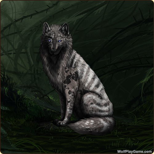 Eyes: Light Blue (Common) Nose: Black (Common) Inner Ears: Obsidian Base Coat: Slate (Common) Leg Type: Tall Boots Leg Color: Obsidian Head Type: Frontal Head Color: Obsidian Muzzle Type: Stripe Muzzle Color: Ombre Harlequin: Obsidian Back Type: Thylacine Back Color: White Back Type #2: Crest Back Color #2: None Belton: White Leopard: Black Speckle Type: None Speckle Color: White Ear Edges Type: None Ear Edges Color: Black |