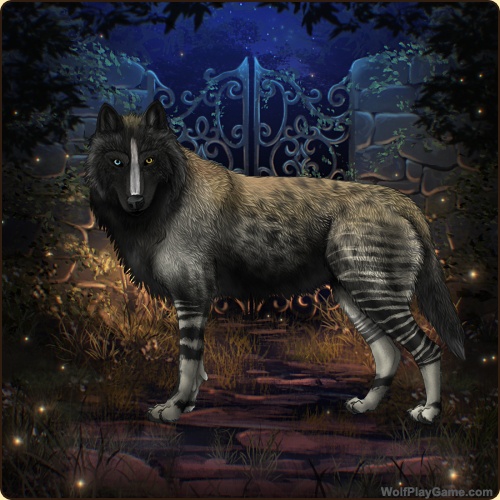 Eyes: Blue-Brown (Common) Nose: Black (Common) Base Coat: Obsidian (Common) Leg Type: Rainkissed Leg Color: None Muzzle Type: Stripe Muzzle Color: White Back Type: Sooty 2 Back Color: Cream Shoulder: Cream Brindle: Obsidian Okapi: Cream |