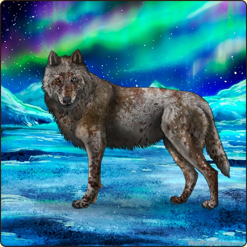 Eyes: Brown-Blue (Common) Nose: Black (Common) Base Coat: Coyote (Common) Leg Type: Frosted Leg Color: None Muzzle Type: Stripe Muzzle Color: None Somatic Mutation: White Back Type: None Back Color: White Shoulder: Chocolate Piebald 1: White Belton: Rosewood Leopard: White Speckle Type: Full Speckle Color: White Ear Edges Type: Tip Ear Edges Color: None |
