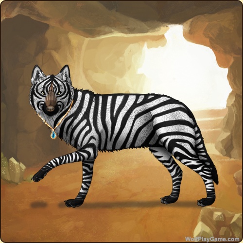 Eyes: Yellow (Common) Nose: Dark Liver (Common) Base Coat: Zebra (Legendary) Leg Type: Medium Leg Color: None Head Type: Panda Head Color: None Tail Type: Full Muzzle Type: Stripe Muzzle Color: Red Piebald 0: Ochre Speckle Type: Shoulder Speckle Color: None Ear Edges Type: Tip Ear Edges Color: None |