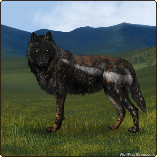 Base Coat: Obsidian (Common) Eyes: Green (Common) Nose: Black (Common) Inner Ears: Obsidian Leg Type: Frosted Leg Color: Obsidian Head Type: Large Facemask Head Color: Obsidian Muzzle Type: Wide Muzzle Color: None Back Type: Side Splash Back Color: White Brindle: Black Belton: Brown |