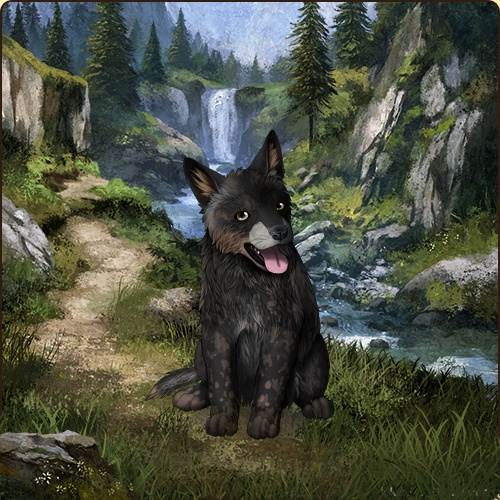 Base Coat: Obsidian (Common) Eyes: Dark Brown (Common) Nose: Black (Common) Inner Ears: Hickory Leg Type: Rainkissed Leg Color: Hickory Head Type: Cheeks Head Color: Hickory Tail Type: Tip Muzzle Type: Wide Muzzle Color: Silver Back Type: Ocelot Back Color: Hickory Shoulder: White Brindle: Obsidian Leopard: Hickory Speckle Type: None Speckle Color: Ochre Ear Edges Type: Full Ear Edges Color: Obsidian |