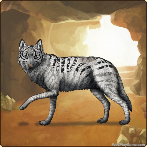 Base Coat: Zebra (Legendary) Eyes: Grey (Legendary) Nose: Liver (Common) Tail Type: Tip Muzzle Type: None Muzzle Color: Black Back Type: None Back Color: Slate Back Type #2: Dapple Back Color #2: None Piebald 2: Silver Leopard: White Ear Edges Type: Full Ear Edges Color: None |