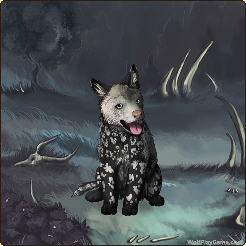 Base Coat: Obsidian (Common) Eyes: Blue-Green (Common) Nose: Pink (Common) Inner Ears: White Leg Type: None Leg Color: White Head Type: Large Facemask Head Color: White Tail Type: Tip Muzzle Type: Stripe Muzzle Color: None Back Type: Paintbrush Back Color: White Back Type #2: Crest Back Color #2: None Shoulder: White Piebald 0: Blue Leopard: White Speckle Type: Full Speckle Color: None Ear Edges Type: Tip Ear Edges Color: White |
