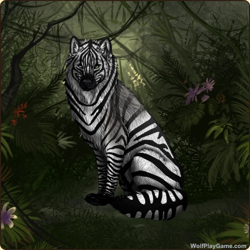 Base Coat: Zebra (Legendary) Eyes: Blue-Green (Common) Nose: Black (Common) Inner Ears: None Leg Type: Frosted Leg Color: None Back Type: Full Back Color: None Back Type #2: Extended Saddle Back Color #2: None Shoulder: Black |
