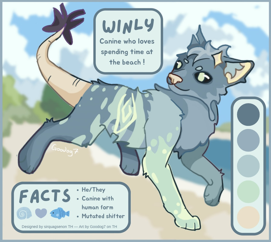 Here is my art of Winly, I hope you like it :) I tried my best to be creative with his character! There is a toyhouse request pending on their profile, for this art, as well.