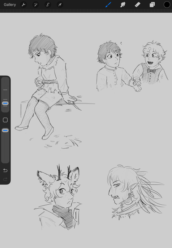 The January piece was completed a couple days into the year and I still love it, not gonna lie - I could redraw it but that perspective still kills me 😭 I was going to say "the start of my Vinrory obsession" but by then I was already FAR gone. The idea of Vincent sitting on Rory came to me in a holy vision. Hope he didn't suffer any broken ribs. WILL be drawing that again.