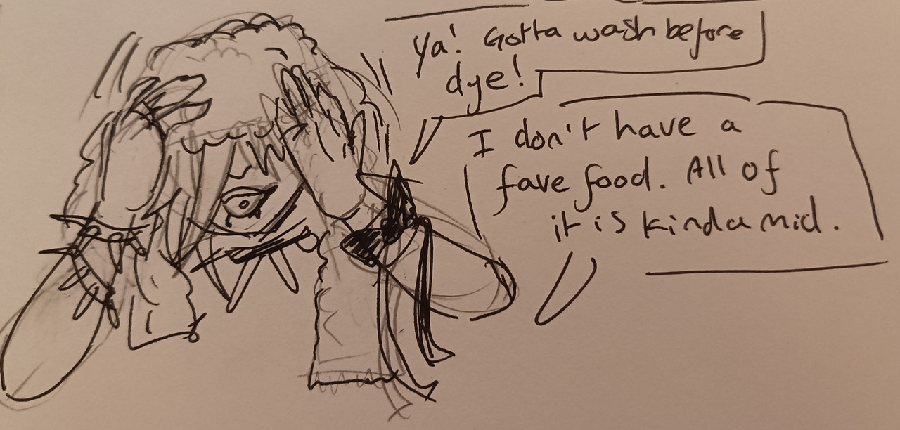 Apollo, oop- uhh sorry I think but what is your favorite food:3 Kobel, real, no you did not, but what is your favorite food?(Let me guess, humans?) Sascha, uhh your hair is dripping, what is your favorite food?