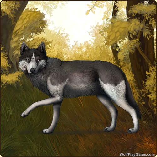Eyes: Gold (Common) Nose: Black (Common) Base Coat: Black (Common) Leg Type: High Leg Color: White Head Type: Cheeks Head Color: White Muzzle Type: Stripe Muzzle Color: White Back Type: Half Back Color: Slate |