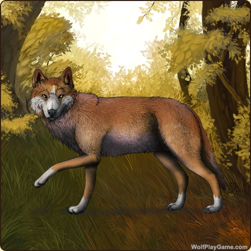 Base Coat: Ochre (Common) Eyes: Yellow (Common) Nose: Black (Common) Leg Type: Paws Leg Color: White Head Type: Cheeks Head Color: White Muzzle Type: Stripe Muzzle Color: White Back Type: Full Back Color: Red |