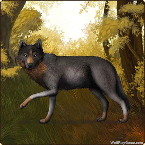Eyes: Dark Blue (Common) Nose: Black (Common) Base Coat: Black (Common) Leg Type: Paws Leg Color: Red Head Type: Throat Head Color: Red Muzzle Type: Stripe Muzzle Color: Tan Back Type: Half Back Color: Slate |