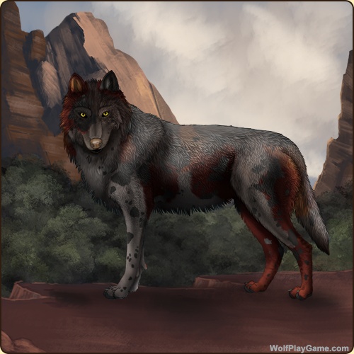 Eyes: Light Brown (Common) Nose: Dark Liver (Common) Inner Ears: None Base Coat: Bonfire (Legendary) Leg Type: Paws Leg Color: None Harlequin: Obsidian Back Type: Rough Back Color: Silver Piebald 4: Black |