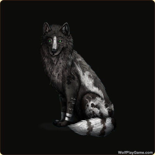 Eyes: Green (Common) Nose: Black (Common) Base Coat: Black (Common) Leg Type: Rings Leg Color: White Head Type: None Head Color: White Tail Type: Three Rings Muzzle Type: Stripe Muzzle Color: White Harlequin: Obsidian Somatic Mutation: Black Back Type: Side Splash Back Color: White Back Type #2: Crest Back Color #2: None Brindle: Black Piebald 6: White Belton: Black Okapi: Silver Leopard: Obsidian Speckle Type: Shoulder Speckle Color: Silver Ear Edges Type: Full Ear Edges Color: None |