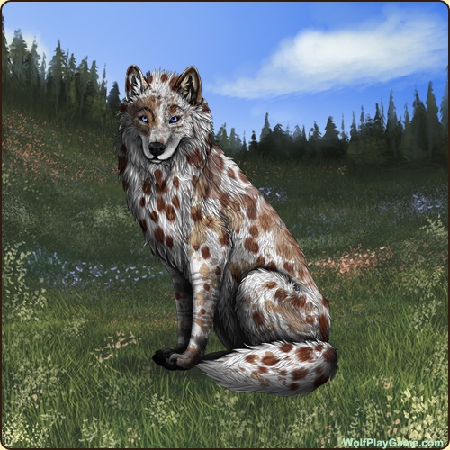 Eyes: Dark Blue (Common) Nose: Black (Common) Base Coat: Dalmation 2 (Common) Leg Type: None Leg Color: White Head Type: Cheeks Head Color: White Muzzle Type: Narrow Muzzle Color: White Harlequin: Tan Back Type: Ocelot Back Color: White Belton: Red Okapi: Slate Ear Edges Type: None Ear Edges Color: Grey |