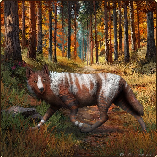 Eyes: Gold (Common) Nose: Black (Common) Base Coat: Red (Common) Leg Type: Rings Leg Color: White Head Type: Reverse Throat Head Color: White Muzzle Type: Stripe Muzzle Color: White Somatic Mutation: Black Back Type: Thylacine Back Color: White Back Type #2: Brindle 2 Back Color #2: None Brindle: Black Piebald 6: White Belton: Brown Okapi: Black Leopard: Cream Speckle Type: Shoulder Speckle Color: None Ear Edges Type: Full Ear Edges Color: None |