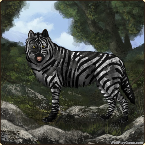 Eyes: Light Brown (Common) Nose: Pink (Common) Base Coat: Zebra (Legendary) Tail Type: Paintbrush Muzzle Type: None Muzzle Color: Cider 1 Harlequin: Blue Back Type: Crest Back Color: None Back Type #2: Crest Back Color #2: None Ear Edges Type: Half Ear Edges Color: Red |