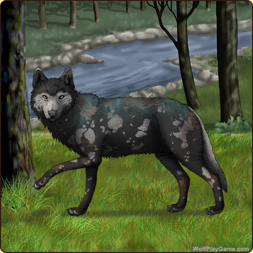 Eyes: Brown-Green (Common) Nose: Black (Common) Base Coat: Dark Botanic Quartzite (Uncommon) Leg Type: Mitts Leg Color: White Head Type: Small Facemask Head Color: White Tail Type: Full Muzzle Type: None Muzzle Color: Blue Harlequin: Grey Back Type: Side Splash Back Color: None Back Type #2: Sooty 2 Back Color #2: None Okapi: Tortoiseshell Ear Edges Type: Tip Ear Edges Color: Silver |