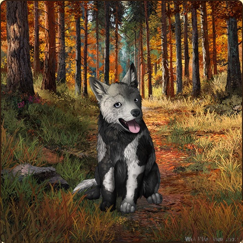 Eyes: Light Blue (Common) Nose: Black (Common) Inner Ears: White Base Coat: Obsidian (Common) Leg Type: None Leg Color: White Head Type: Large Facemask Head Color: White Tail Type: Three Rings Muzzle Type: Stripe Muzzle Color: White Harlequin: Black Somatic Mutation: White Back Type: Half Back Color: None Belton: Black Ear Edges Type: Full Ear Edges Color: None |