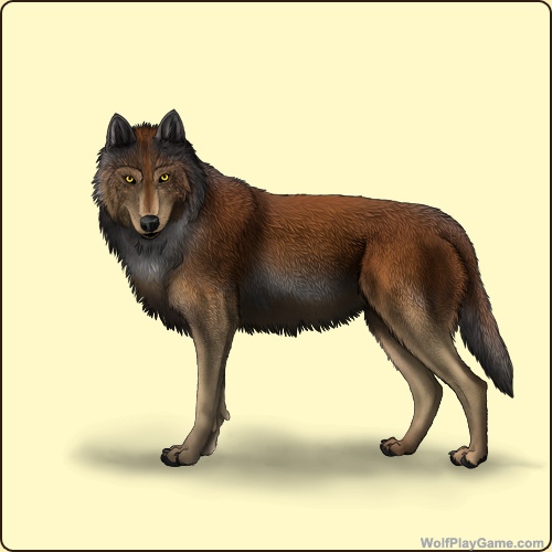 Base Coat: Grey (Common) Eyes: Gold (Common) Nose: Black (Common) Leg Type: High Leg Color: Tan Head Type: Large Facemask Head Color: Tan Muzzle Type: Stripe Muzzle Color: Red Back Type: Full Back Color: Red |