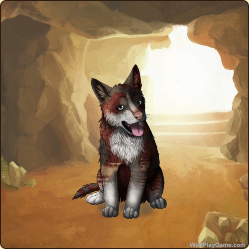 Eyes: Light Blue (Common) Nose: Pink (Common) Base Coat: Gold Sandstone (Rare) Leg Type: Low Leg Color: White Head Type: Frontal Head Color: White Muzzle Type: Stripe Muzzle Color: Red Merle Somatic Mutation: Black Back Type #2: Sooty 1 Back Color #2: None Okapi: Tan |