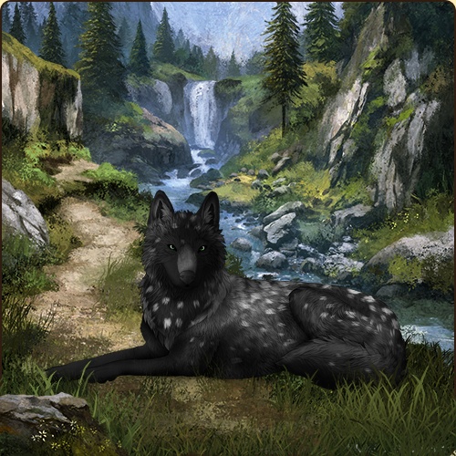 Eyes: Green (Common) Nose: Black (Common) Inner Ears: None Base Coat: Obsidian (Common) Leg Type: Frosted Leg Color: None Head Type: Tears Head Color: None Muzzle Type: Stripe Muzzle Color: Black Back Type: Sooty 2 Back Color: Black Shoulder: White Speckle Type: Full Speckle Color: White Ear Edges Type: Tip Ear Edges Color: None |