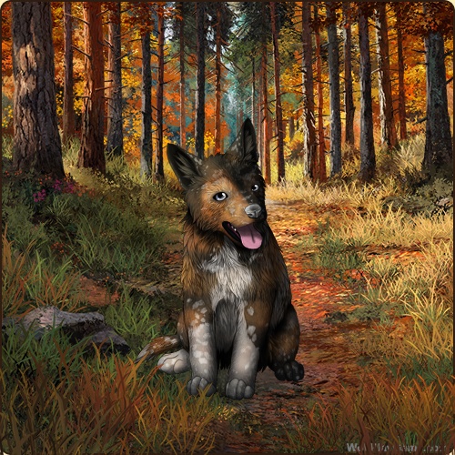 Eyes: Light Blue (Common) Nose: Light Grey (Uncommon) Base Coat: Tortoiseshell (Common) Leg Type: Rainkissed Leg Color: None Head Type: Panda Head Color: None Tail Type: Full Muzzle Type: None Muzzle Color: Black Back Type: None Back Color: Red Back Type #2: Manchado Back Color #2: None Piebald 3: White Belton: White Ear Edges Type: None Ear Edges Color: Obsidian |