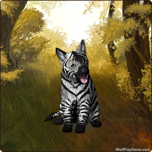 Eyes: Green-Brown (Common) Nose: Black (Common) Inner Ears: None Base Coat: Zebra (Legendary) Leg Type: Medium Leg Color: None Muzzle Type: Stripe Muzzle Color: None Harlequin: White Back Type: None Back Color: Black Speckle Type: None Speckle Color: Rosewood |