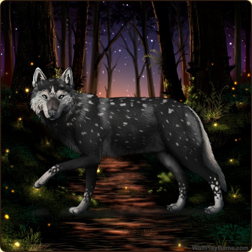 Eyes: Green (Common) Nose: Black (Common) Inner Ears: White Base Coat: Obsidian (Common) Leg Type: Rainkissed Leg Color: White Head Type: Large Facemask Head Color: White Tail Type: Full Muzzle Type: Narrow Muzzle Color: Black Harlequin: White Back Type: None Back Color: Black Back Type #2: Spike Back Color #2: None Brindle: Obsidian Belton: White Speckle Type: Full Speckle Color: White Ear Edges Type: Full Ear Edges Color: White |