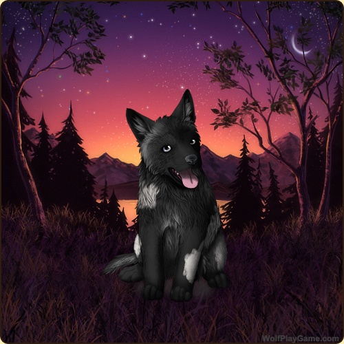 Eyes: Light Blue (Common) Nose: Black (Common) Base Coat: Obsidian (Common) Head Type: Star Head Color: None Muzzle Type: Stripe Muzzle Color: Obsidian Back Type: Crest Back Color: Obsidian Piebald 1: White |