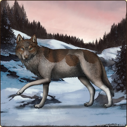 Base Coat: Red Wolf (Common) Eyes: Blue-Green (Common) Nose: Dark Liver (Common) Leg Type: Tall Boots Leg Color: Silver Head Type: None Head Color: Silver Tail Type: Tip Muzzle Type: Stripe Muzzle Color: None Back Type: Saddle Back Color: None Piebald 2: Grey |