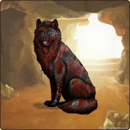 Base Coat: Gold Sandstone (Rare) Eyes: Brown-Blue (Common) Nose: Pink (Common) Inner Ears: None Leg Type: Short Boots Leg Color: None Head Type: Beard Head Color: None Tail Type: Three Rings Muzzle Type: None Muzzle Color: Red Somatic Mutation: Blue Back Type: Manchado Back Color: None Back Type #2: Rough Back Color #2: None Belton: Brown Okapi: Rosewood Ear Edges Type: Tip Ear Edges Color: None |