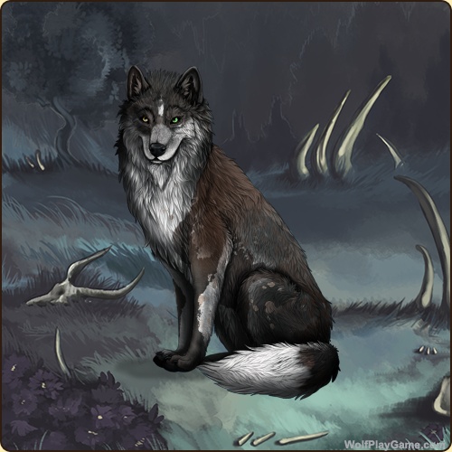 Base Coat: Husky 1 (Common) Eyes: Brown-Green (Common) Nose: Black (Common) Leg Type: Frosted Leg Color: White Head Type: Cheeks Head Color: White Tail Type: Half Muzzle Type: Narrow Muzzle Color: Silver Harlequin: Ombre Somatic Mutation: Black Back Type: Spike Back Color: Hickory Back Type #2: Sooty 2 Back Color #2: None Shoulder: Hickory Speckle Type: Full Speckle Color: Silver |