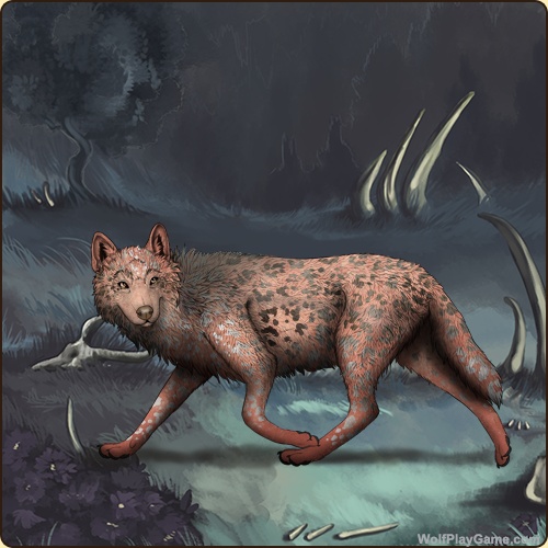 Base Coat: Peach (Uncommon) Eyes: Solar Flare (Legendary) Nose: Dark Liver (Common) Inner Ears: None Head Type: Reverse Throat Head Color: None Tail Type: Tip Back Type: Side Splash Back Color: Grey Back Type #2: Extended Saddle Back Color #2: None Shoulder: Black Leopard: Red Merle Speckle Type: Shoulder Speckle Color: None |