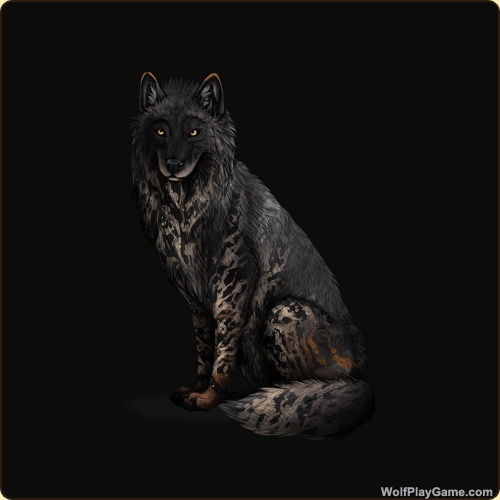 Base Coat: Obsidian (Common) Eyes: Gold (Common) Nose: Black (Common) Leg Type: Frosted Leg Color: None Head Type: Small Facemask Head Color: None Tail Type: Two Rings Muzzle Type: None Muzzle Color: Red Back Type: Side Splash Back Color: None Back Type #2: Thylacine Back Color #2: None Brindle: Ombre Okapi: Red Leopard: Ombre Ear Edges Type: Tip Ear Edges Color: Red |