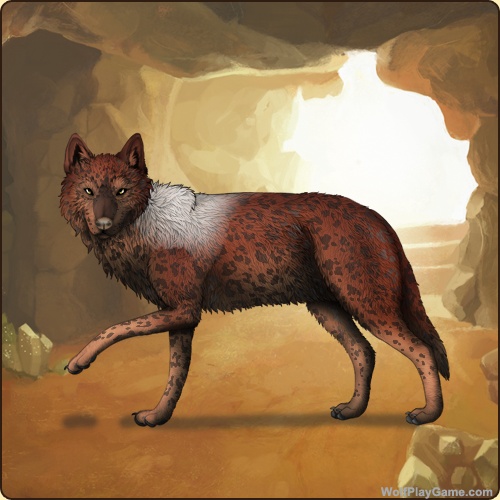 Base Coat: Sienna (Legendary) Eyes: Yellow (Common) Nose: Liver (Common) Inner Ears: None Leg Type: Frosted Leg Color: None Tail Type: Half Muzzle Type: Stripe Muzzle Color: Obsidian Shoulder: White Leopard: Obsidian |