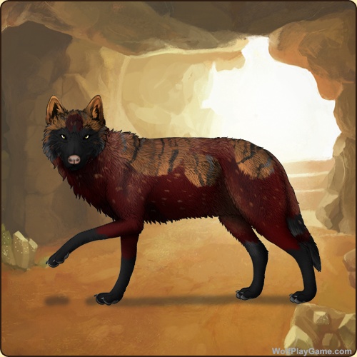 Base Coat: Brown (Common) Eyes: Yellow (Common) Nose: Pink (Common) Leg Type: Low Leg Color: Obsidian Head Type: Large Facemask Head Color: Obsidian Tail Type: Two Rings Muzzle Type: Stripe Muzzle Color: None Back Type: None Back Color: Red Merle Back Type #2: Thylacine Back Color #2: None Brindle: Obsidian Piebald 2: Rosewood Speckle Type: Full Speckle Color: Red Ear Edges Type: None Ear Edges Color: Ochre |
