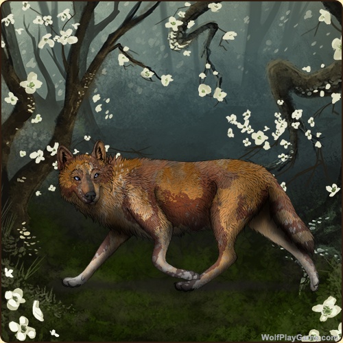 Base Coat: Golden (Common) Eyes: Dark Blue (Common) Nose: Black (Common) Tail Type: Tip Muzzle Type: Stripe Muzzle Color: Tortoiseshell Somatic Mutation: Rosewood Back Type: None Back Color: White Belton: Red Merle |