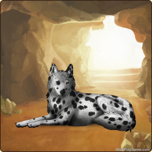 Base Coat: Dalmation (Common) Eyes: Yellow (Common) Nose: Black (Common) Head Type: Small Facemask Head Color: None Tail Type: Tip Muzzle Type: Stripe Muzzle Color: None Back Type: None Back Color: White Speckle Type: Shoulder Speckle Color: None |