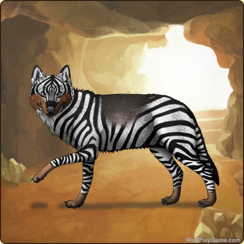 Base Coat: Zebra (Legendary) Eyes: Gold (Common) Nose: Black (Common) Leg Type: Paws Leg Color: Red Head Type: Cheeks Head Color: Red Muzzle Type: Stripe Muzzle Color: None Back Type: Saddle Back Color: Black |